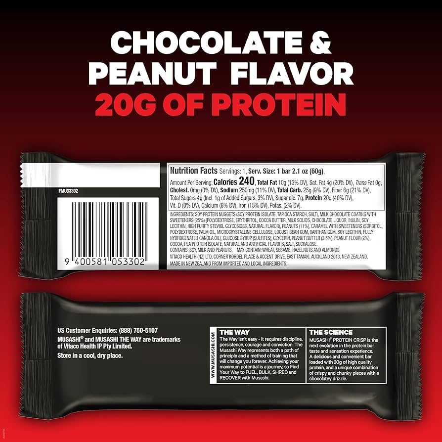 “Musashi Protein Crisp Bars are engineered for the next-gen athlete — combining 20 g of high-quality protein with a crisp, chunk-loaded texture to fuel recovery, build strength, and support your evolution to peak performance.”